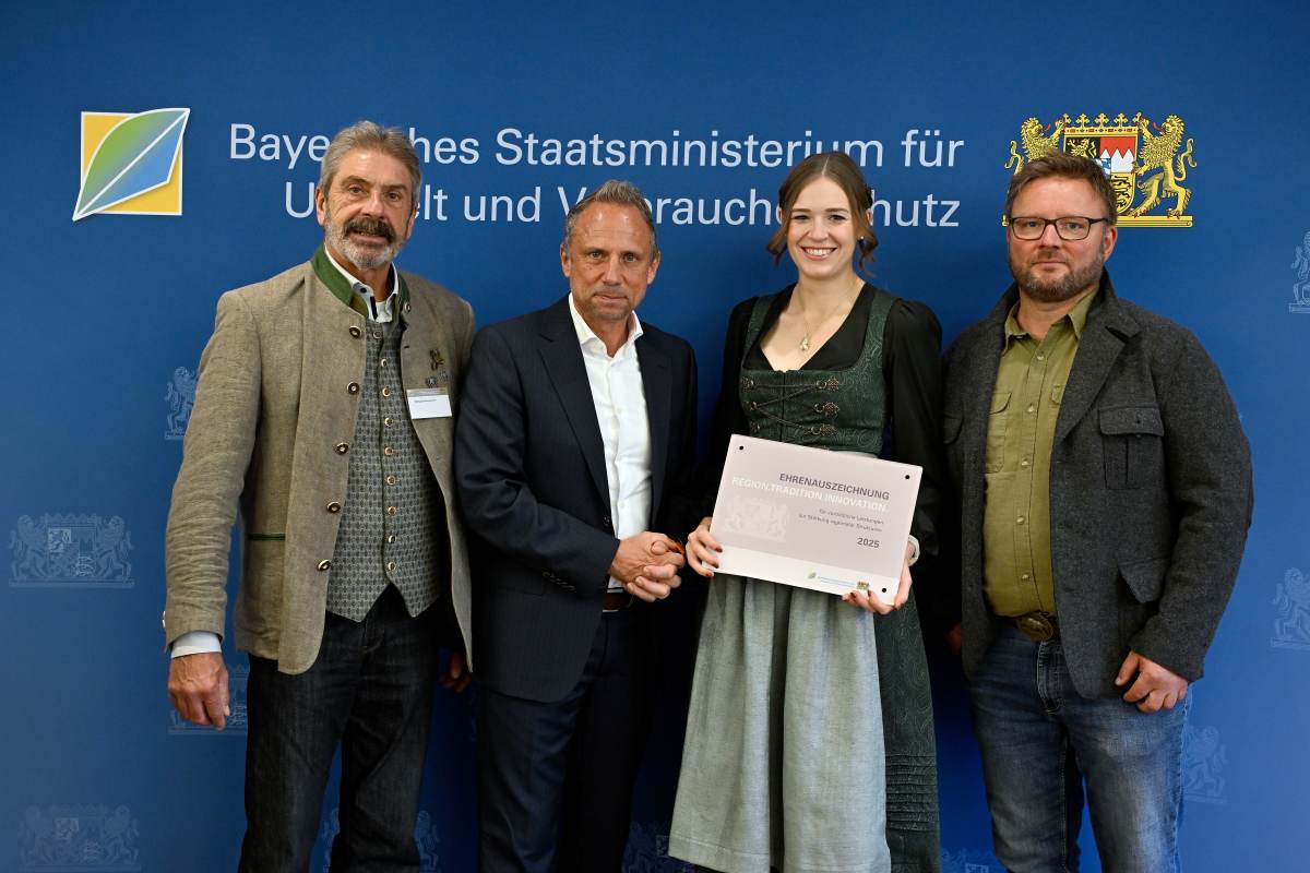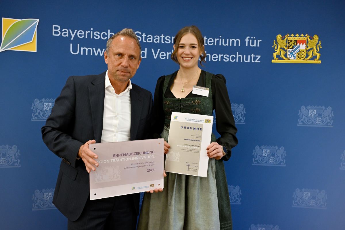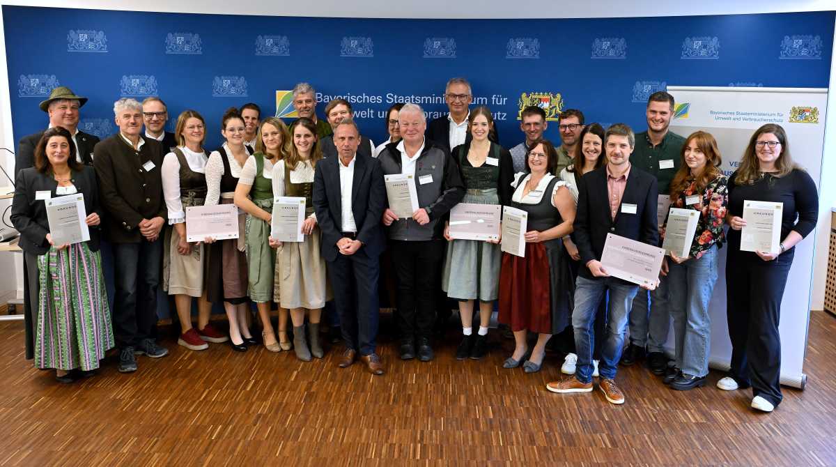 Wertschöpfung vor Ort unterstützen, Tierwohl stärken und regionale Strukturen erhalten: Mit der Ehrenauszeichnung „REGION.TRADITION.INNOVATION“ des Bayerischen Umweltministeriums werden dieses Jahr gleich neun herausragende, regional arbeitende Betriebe honoriert. Bayerns Umwelt- und Verbraucherschutzminister Thorsten Glauber betonte heute bei der Übergabe der Auszeichnung in München: „Bayern ist geprägt von einer bäuerlichen und handwerklichen Struktur. Wir wollen diese regionalen Strukturen erhalten und stärken. Ich freue mich, dieses Jahr aufgrund des herausragenden Engagements doppelt so viele Betriebe wie bisher auszeichnen zu können. Dank ihnen wird die lokale Wertschöpfung weiter gefestigt. Sie verbinden in den Betrieben Tradition und Innovation. Sie bewahren die Stärke Bayerns, die in einer handwerklich hochwertigen und regionalen Produktion liegt.“
