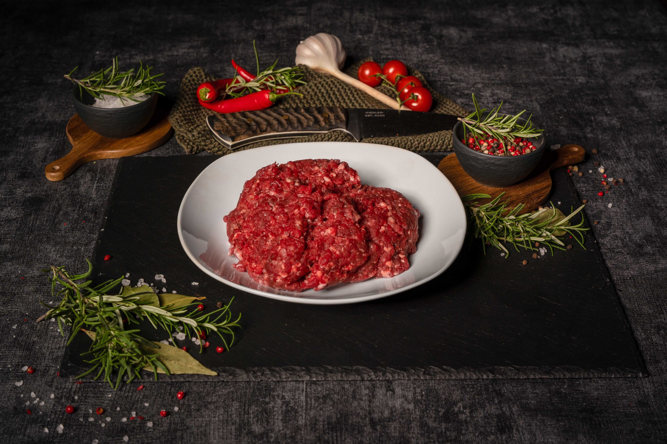 Das reine Rinderhackfleisch setzt sich aus fein gehacktem Muskelfleisch zusammen. Da bei Hackfleisch die Muskelfasern stark zerkleinert sind, gart es wesentlich schneller, als Sie es bei ganzen Bratenstücken gewohnt sind
